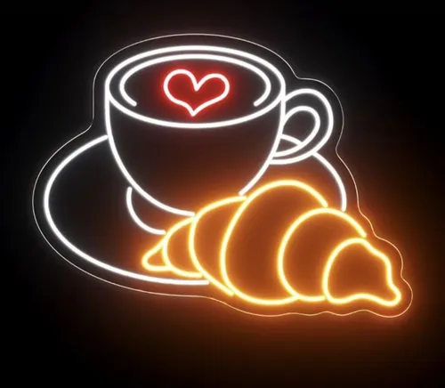 نیون کافی و کروسان مناسب کافه سایز 30در40