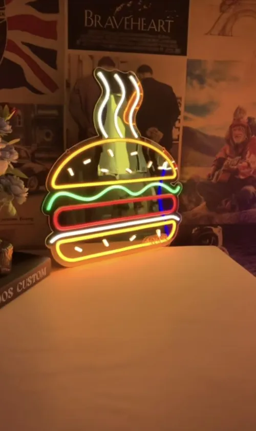 نیون دیواری طرح برگر مناسب فست فودی سایز 30در40